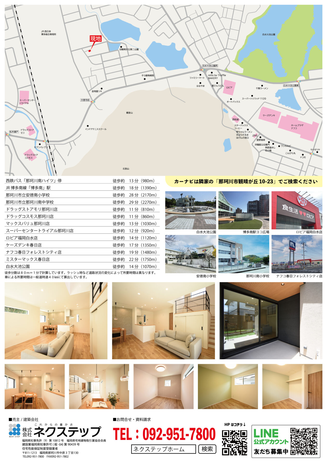 春日市との境に位置する那珂川市観晴が丘。白水大池公園やフォレストシティへのアクセスも良好で、JR博多南線博多南駅も徒歩圏内と生活利便に優れた地域です。