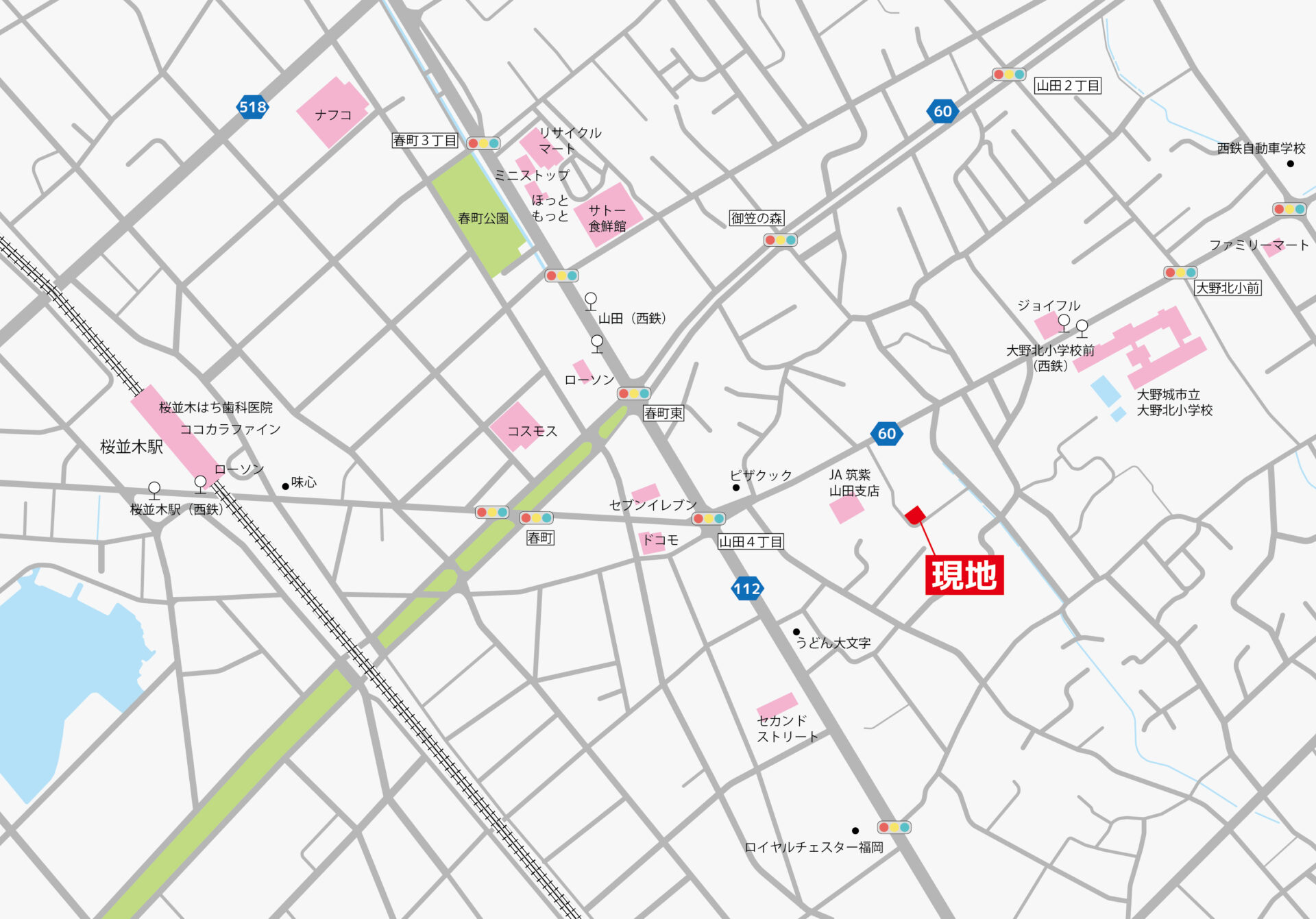 2024年3月開業の西鉄天神大牟田線「桜並木」駅。こちらの駅からおよそ650メートルの場所に建築条件付宅地が誕生しました。
