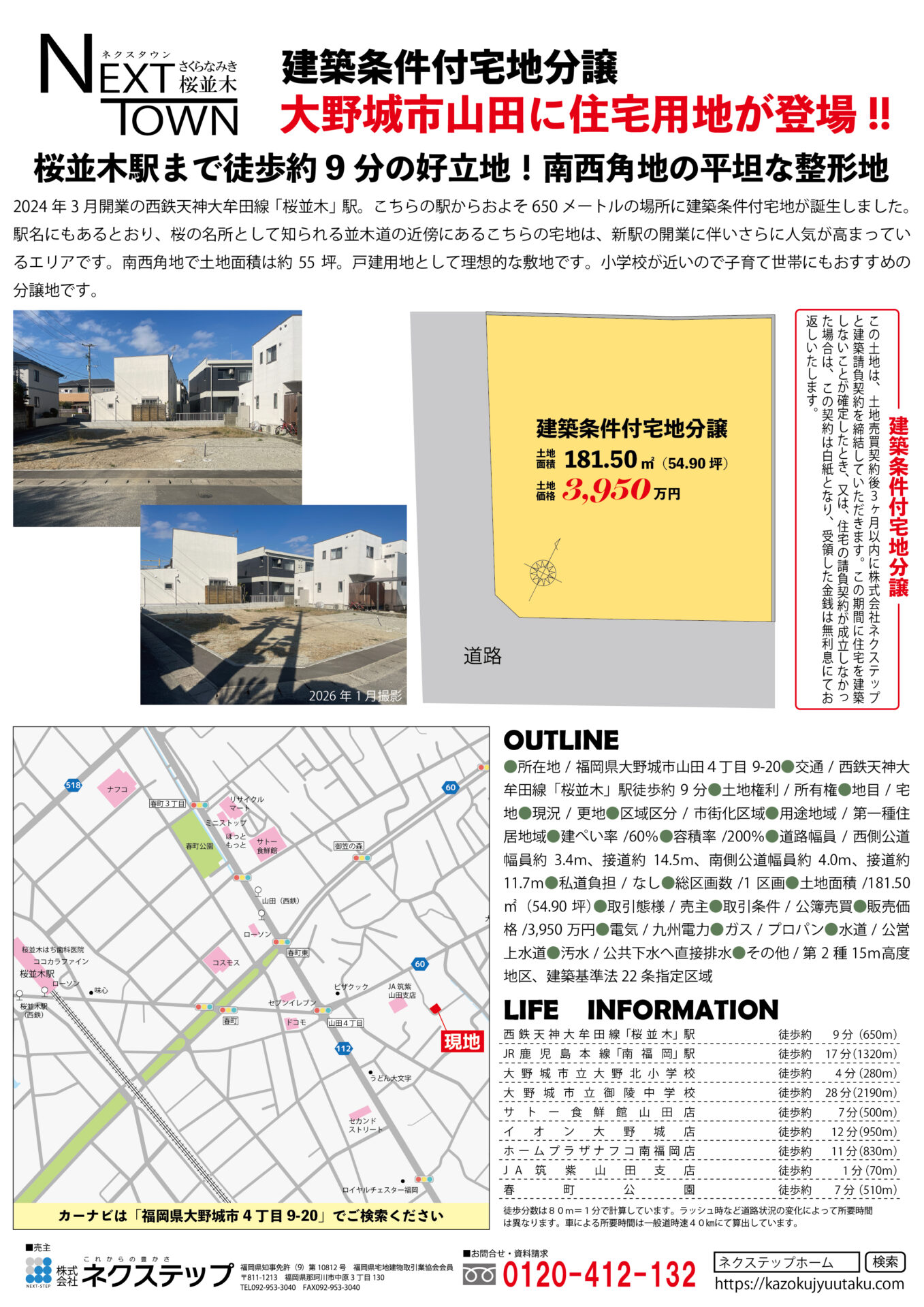 【大野城市】ネクスタウン桜並木 建築条件付宅地分譲中!!
