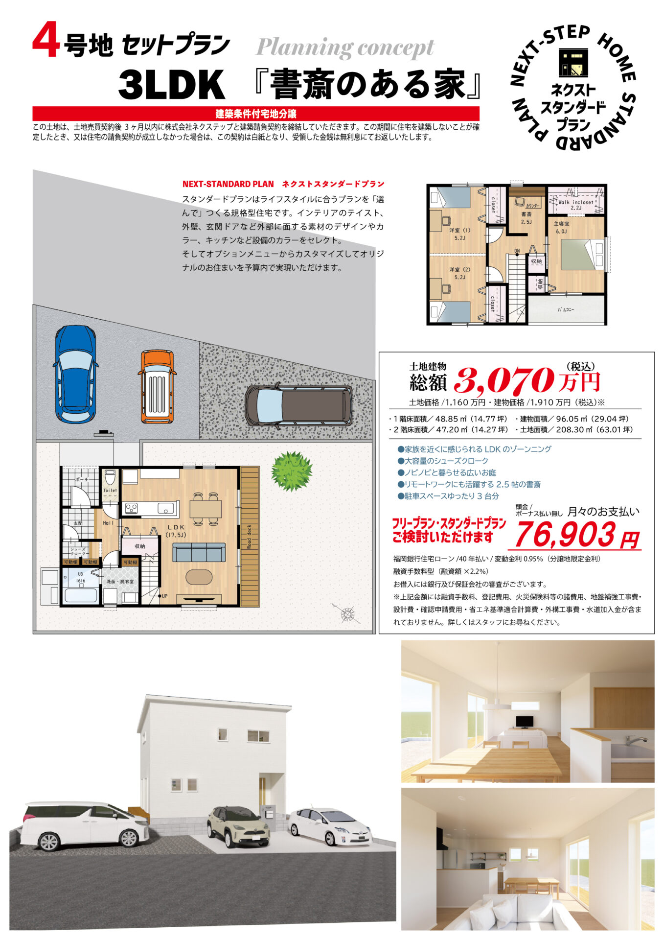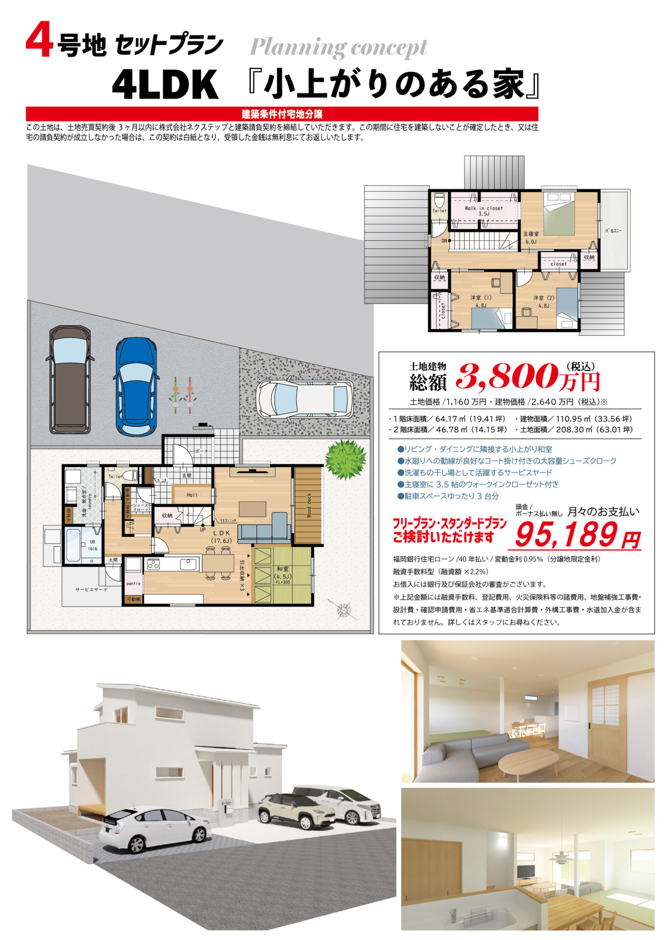 | 土地面積/坪数 | 4号地:208.30㎡(63.01坪)、6号地:209.77㎡(63.45坪) |