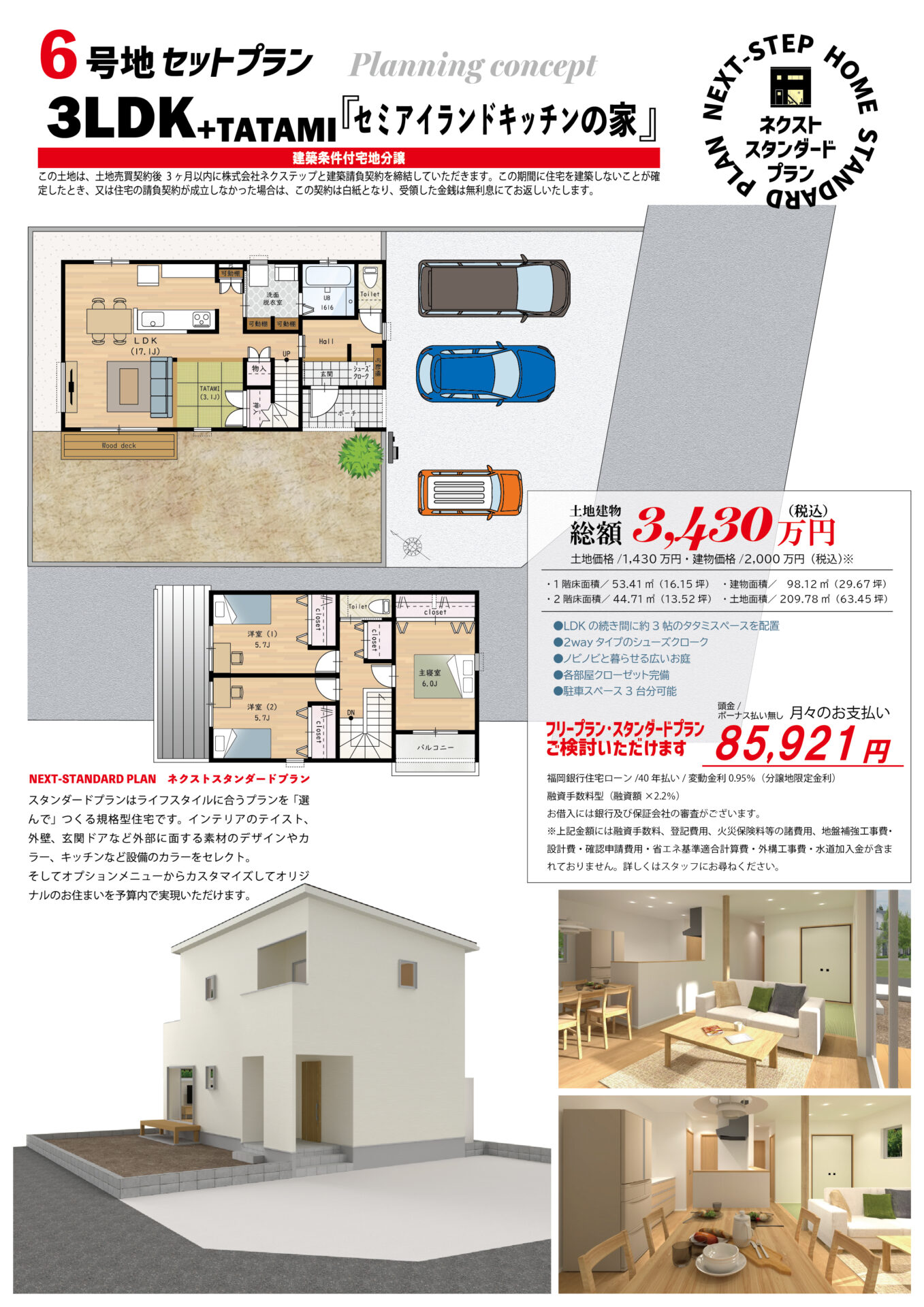 | 土地面積/坪数 | 4号地:208.30㎡(63.01坪)、6号地:209.77㎡(63.45坪)、10号地:206.56㎡(62.48坪) |