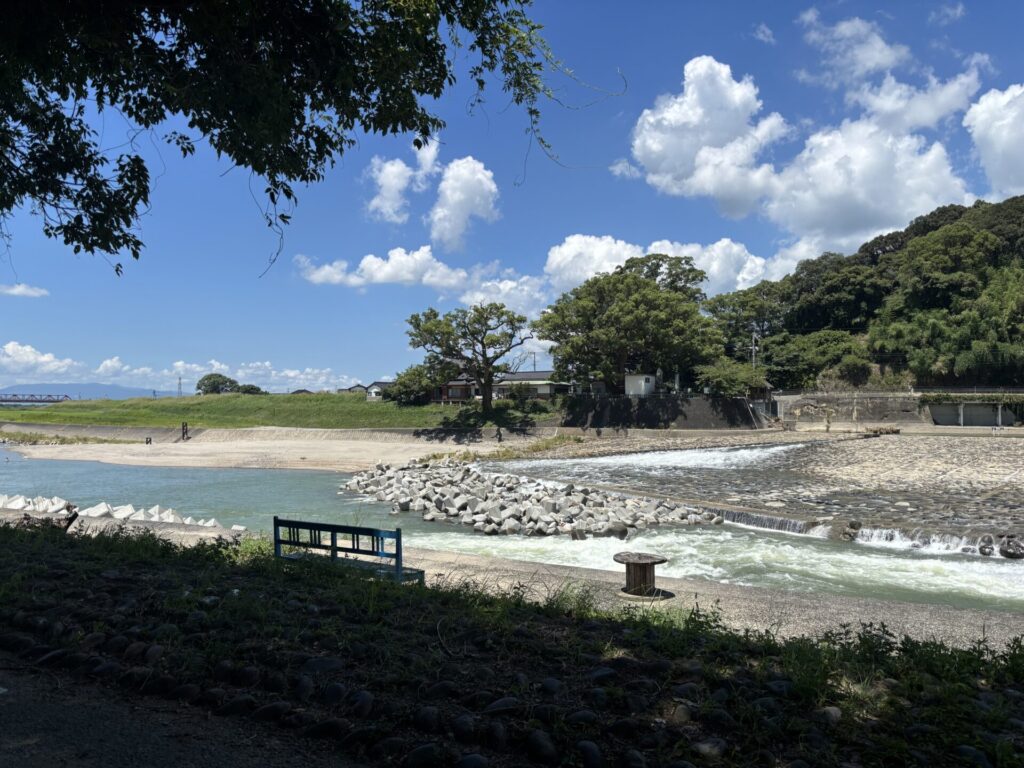筑後川を流れる水の音を聞きながら食べるホットドッグは最高でした!