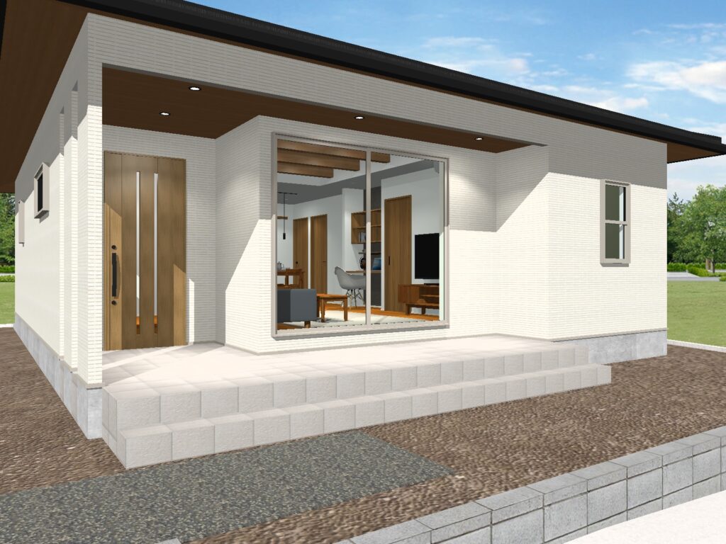 床面積は25.45坪とコンパクトではありますが、玄関~リビングまで続くカバードポーチが魅力です。