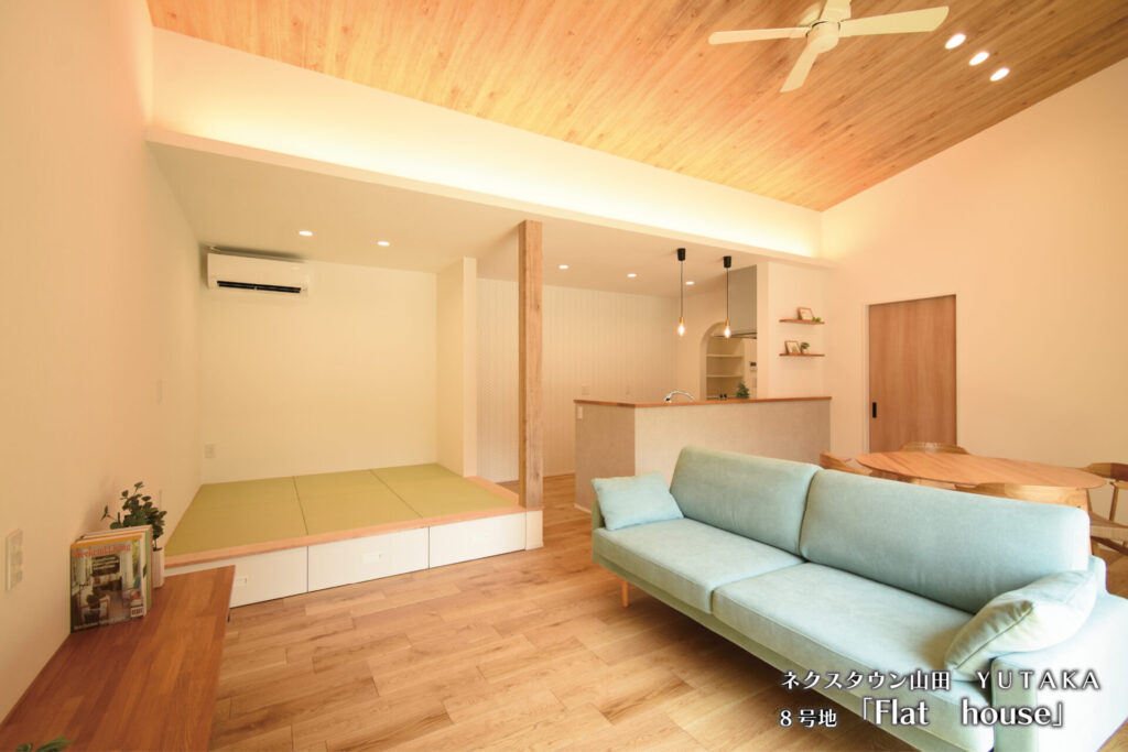 そして、YUTAKAには1号地「1階完結型の家」、8号地「Flat house」ふたつのコンセプトハウス(建売住宅)を建築して公開してきました。こちらについても良いご縁に恵まれてご成約となりました。