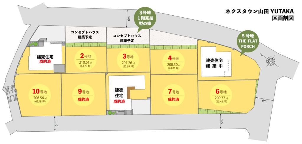自由設計の建築条件付き宅地は7号地、9号地がご成約済みです。