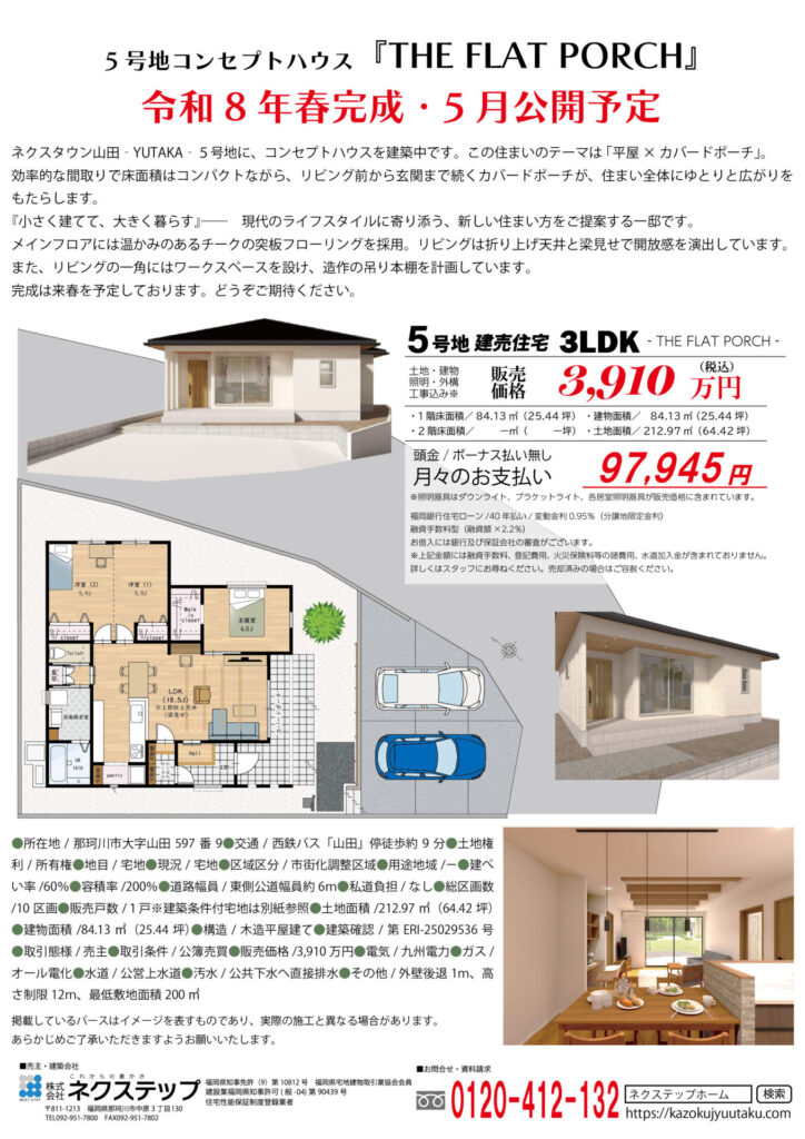 ネクスタウン山田YUTAKA5号地は、令和8年5月に完成・公開予定です。