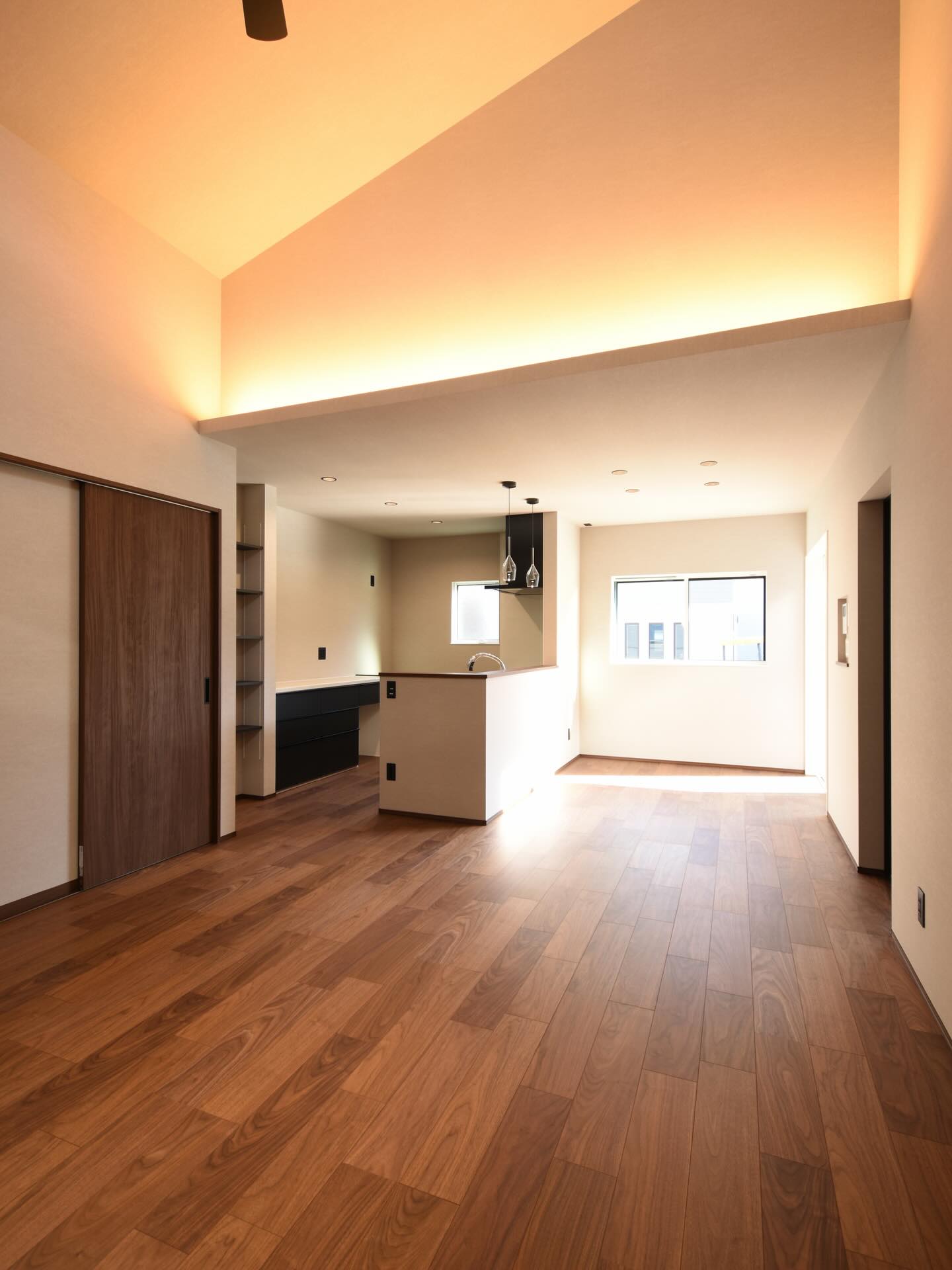 - ウォルナットの床やエコカラットで仕上げたLDK
