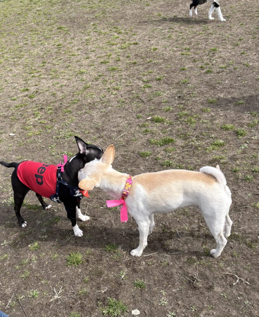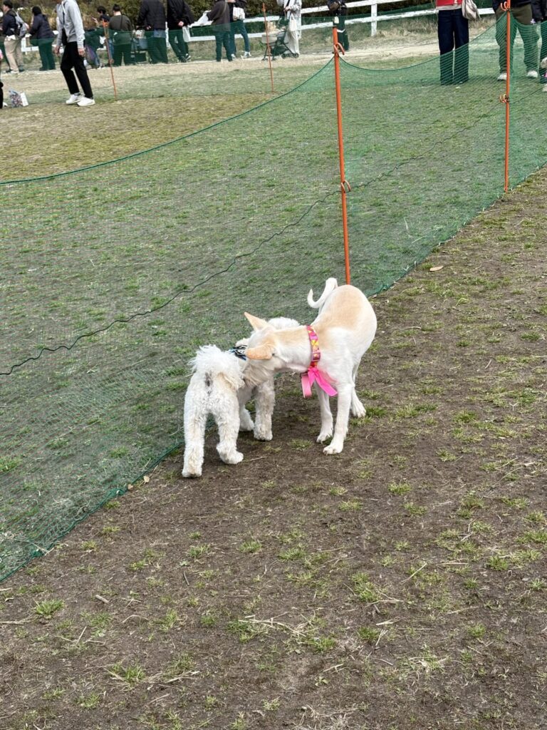 でも、時間が経つにつれて少しずつ慣れてきた様子で、最後の方にはちょっとだけ他のワンちゃんと遊べる姿も見られて、とても嬉しかったです。