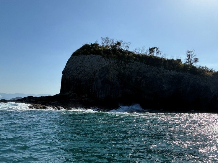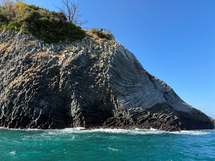 写真では分かりづらいのですが、崖が縦じまの口のようでまさにクジラでした!